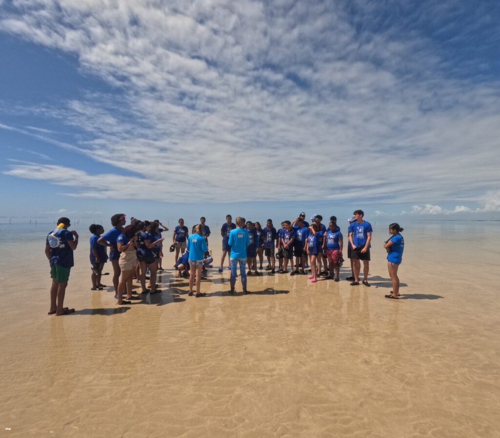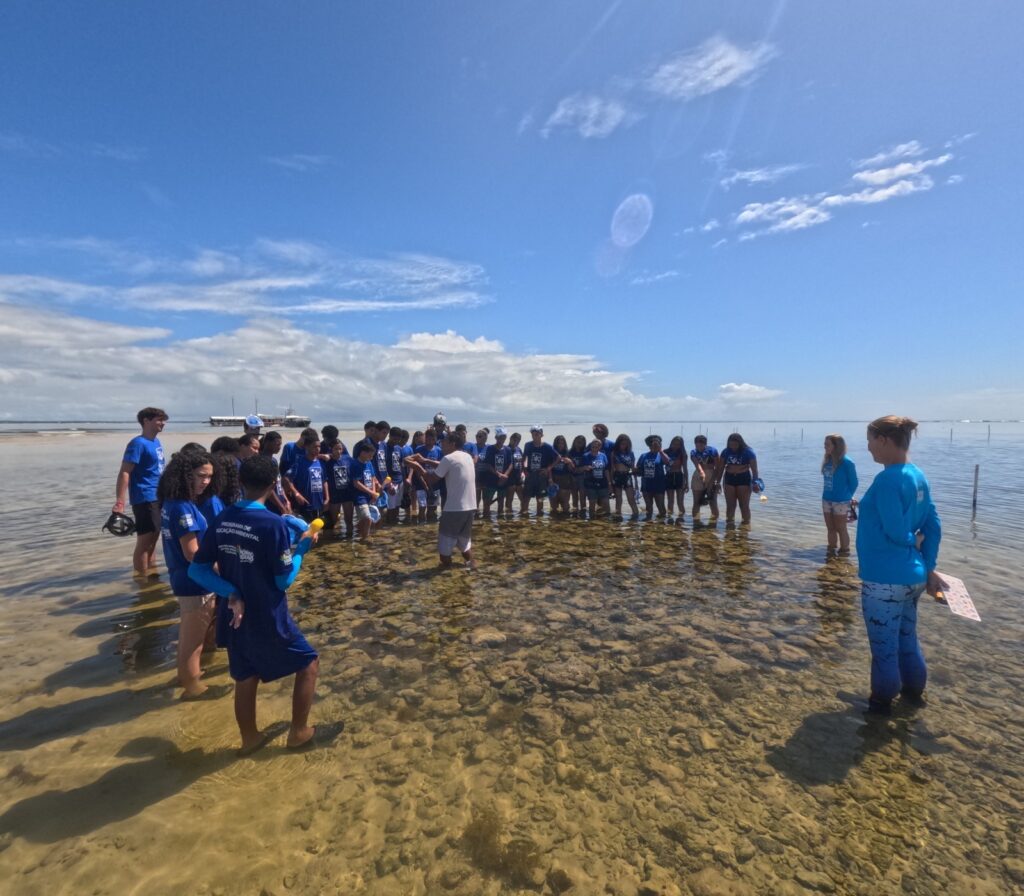 Durante a visita, os alunos receberam orientações sobre os recifes de coral e a biodiversidade presente na unidade de conservação. A programação incluiu palestra educativa sobre a vida marinha e uma experiência prática na Piscina de Visitação, permitindo que os estudantes observassem de perto espécies e formações naturais que compõem um dos ambientes marinhos mais importantes da região.