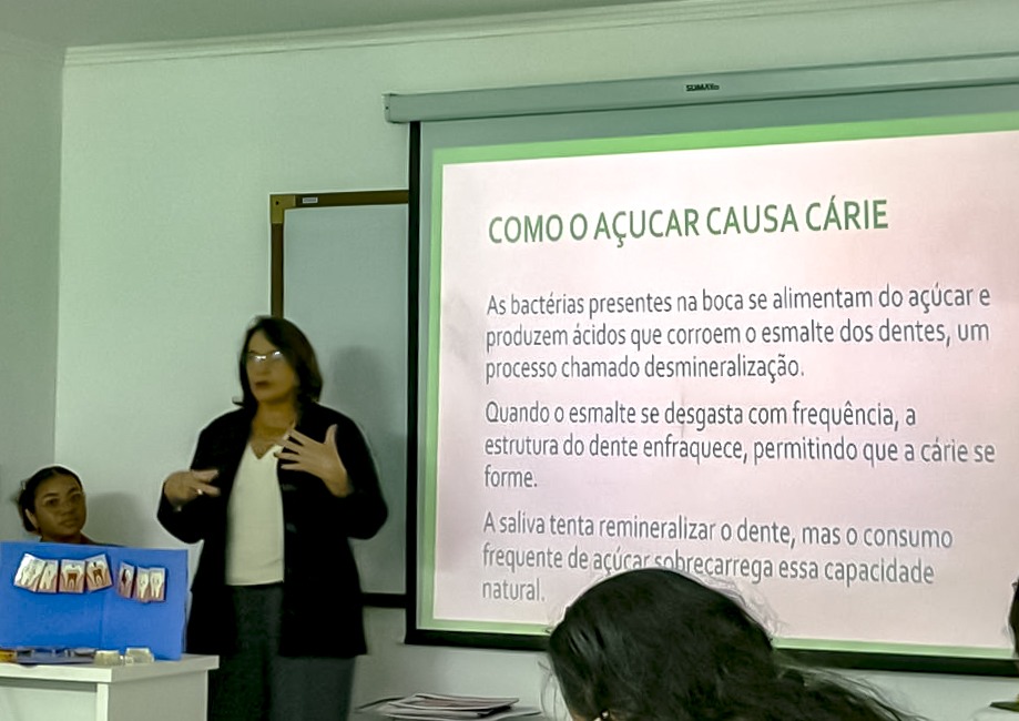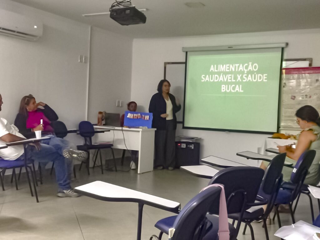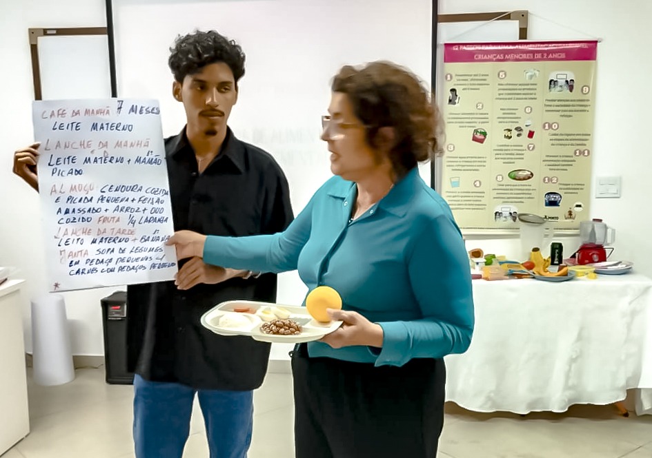 A programação contou ainda com a participação do SAMU, representado pelos profissionais Lucas Marinho, enfermeiro, e Manoel Messias Filho, socorrista, que demonstraram na prática as manobras de desengasgo e suas atualizações recentes. A Saúde Bucal também teve destaque, com a participação da cirurgiã-dentista Lourdes Maria Pimenta, que abordou a relação entre alimentação saudável e prevenção de cáries dentárias na infância.
