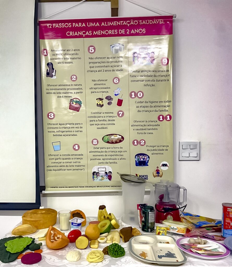 O curso teve como objetivo formar profissionais para conduzir Oficinas de Alimentação Complementar nas Unidades de Saúde da Família, utilizando metodologias ativas e crítico-reflexivas, que estimulam a participação das mães e suas redes de apoio. As oficinas abordam temas como a introdução alimentar a partir dos 6 meses de idade e o aleitamento materno continuado.