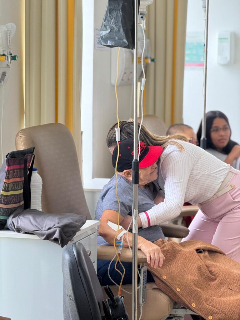 “Fiquei muito encantada com o tratamento e com a qualidade de serviço que é oferecido aqui. Não só com o espaço físico bem estruturado, mas também com uma equipe humanizada, que atende vocês, com amor e dedicação”, disse a primeira dama. Ela colocou a Secretaria da Mulher à disposição das pacientes para oferecer oficinas, cuidados e acolhimento para as mulheres, enfim, ações que melhorem o bem-estar e a autoestima delas.