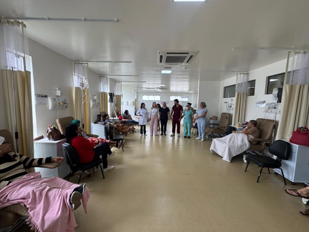 Uma das pacientes em tratamento agradeceu a visita e parabenizou o trabalho realizado pela Unacom. “Estou muito agradecida e contente de ver o carinho, o cuidado, a atenção que todos aqui dedicam aos pacientes, graças a Deus! Parabéns, viu equipe! Nota 10”.